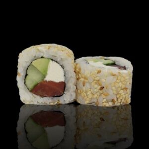 Suitsulõhe, kreemjuust, avokaado, kurk, seesam