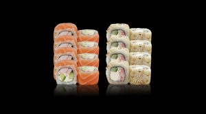 Loto Maki - Лосось, тигровая креветка, крем сыр, авокадо, огурец, кунжут