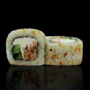 Жаренный лосось, крем сыр, огурец, кунжут