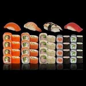 1.Sake nigiri, 3.Ebi nigiri, 5.Unagi nigiri, 2.Maguro nigiri, 100.Sake maki, 105.Kapa maki, 200.Philadelphia classic maki, 202.Philadelphia gold maki, 212.California maki