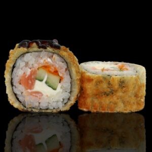 Лосось, крем сыр, огурец, икра масаго, темпура