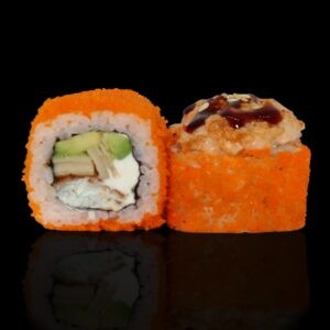 Лосось, угорь, крем сыр, авокадо, японский омлет, икра масаго